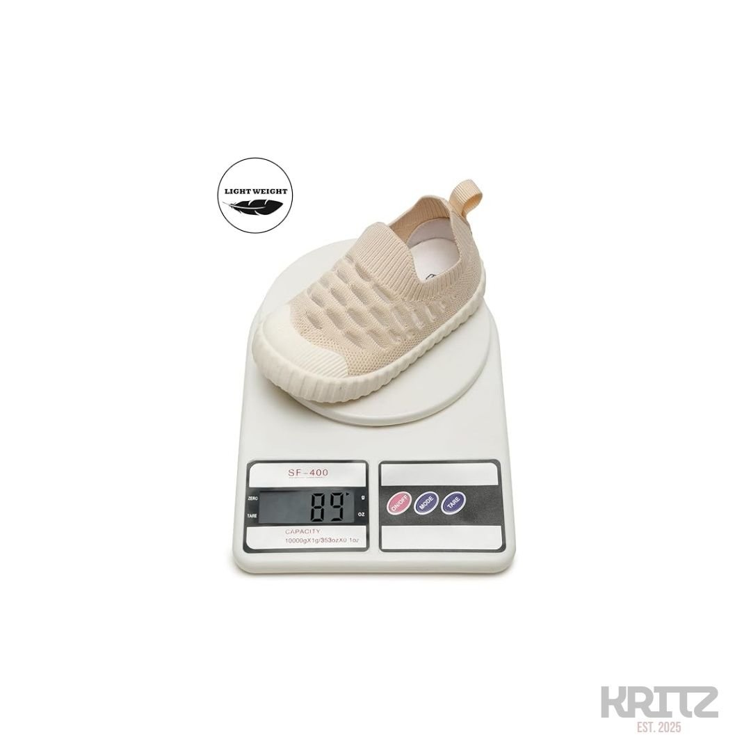 The flexible anti-slip sole gives better grip and balance, which is very important when babies are learning to stand and walk. These baby knit slip-on shoes support natural foot movement without pressure, making them ideal as first walker shoes. The lightweight build ensures your child can move freely while playing, crawling, or walking.